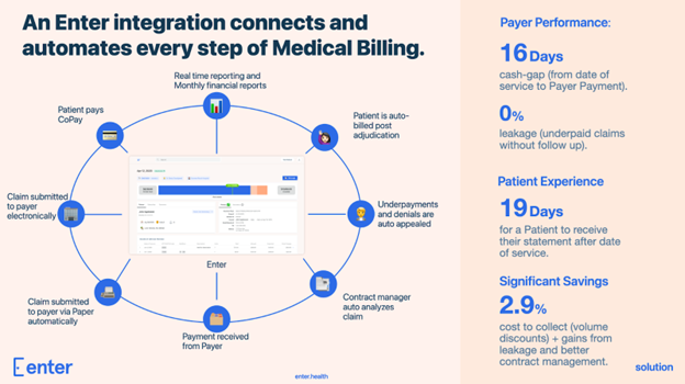 - 5x better patient experience. Enter gets patients billed in 19 days instead of 91.