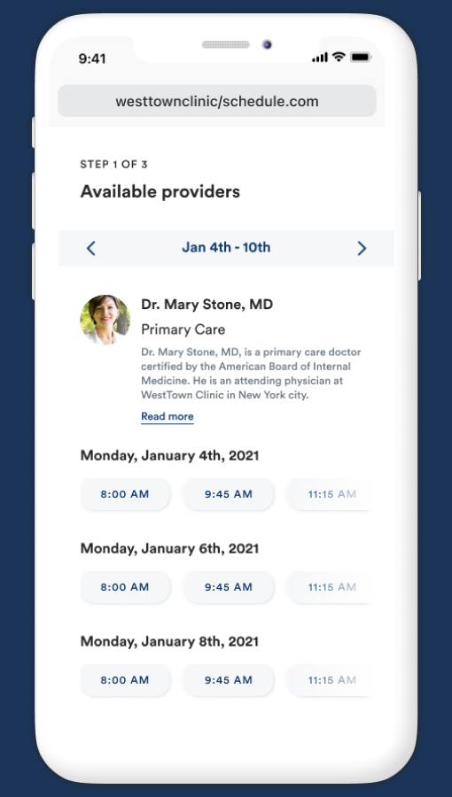 - Integrated self-scheduling & appointment reminders. Seamless scheduling integration on your website and two-way SMS reminders increase bookings while reducing no-shows and ensuring your schedule is always full. Scheduling can be configured to only allow patients to book certain appointment types or providers online vs. having to call the practice.